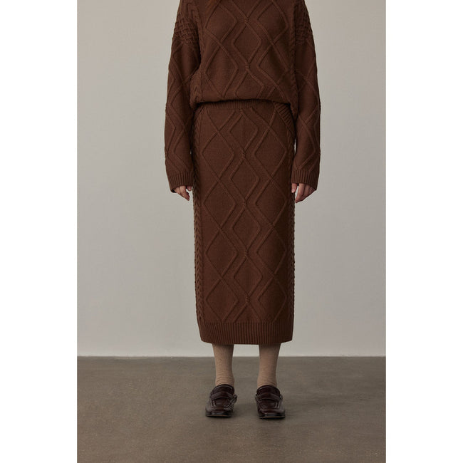 Wool Blend Pleated Skirt-Dark Brown